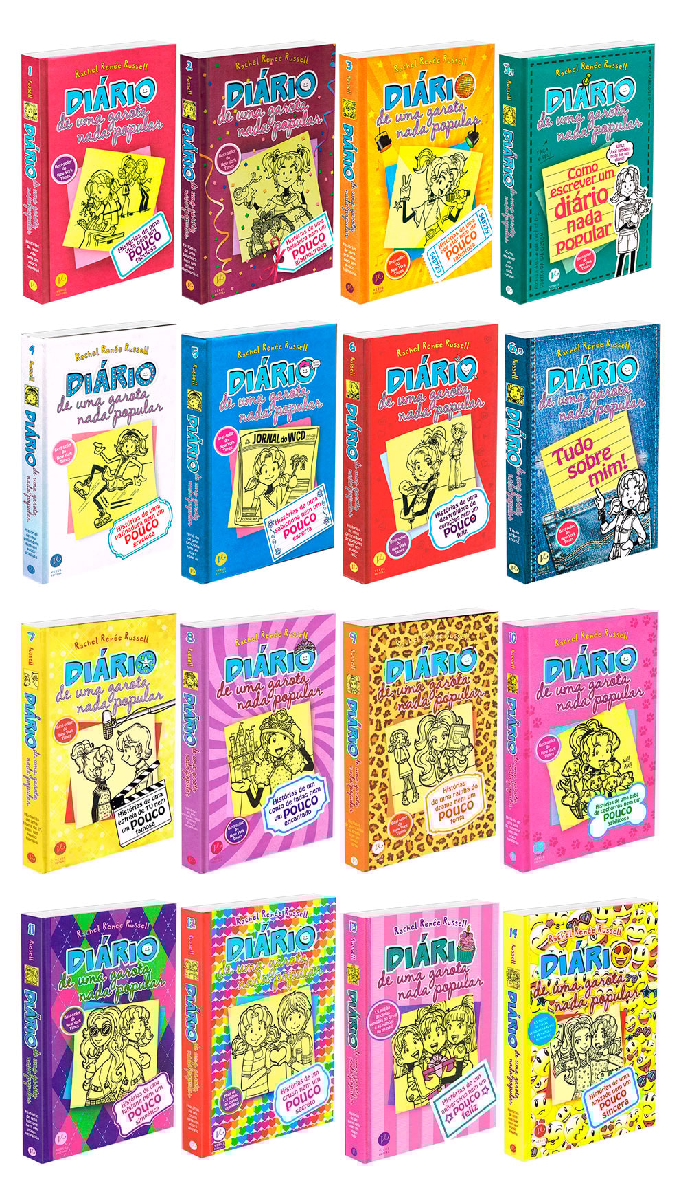 LIVROS FÍSICOS E NOVOS Este Kit Contém 1 Exemplar de Cada: Livro 1 - História de uma vida nem um pouco fabulosa - 288 pag Livro 2 - História de uma baladeira nem um pouco Glamourosa - 288 pag Livro 3 - História de uma pop star nem um pouco Talentosa - 320 pag Livro 3 ½ - Como escrever um diário popular - 288 pag Livro 4 - História de uma patinadora nem um pouco Graciosa - 368 pag Livro 5 - História de uma sabichona nem um pouco Esperta - 336 pag Livro 6 - História de uma destruidora de corações nem um pouco Feliz - 352 pag Livro 6 ½ - Tudo Sobre Mim! - 272 pag Livro 7 - História de uma estrela de TV nem um pouco Famosa - 320 pag Livro 8 - Histórias de um conto de fadas nem um pouco Encantado - 304 pag Livro 9 - História de uma rainha do drama nem um pouco Tonta - 344 pag Livro 10 - História de uma babá de cachorros nem um pouco Habilidosa - 304 pag Livro 11 - Histórias de uma falsiane Nem um Pouco Simpática - 288 pag Livro 12 - Histórias de um Crush nem um pouco secreto - 272 pag Livro 13 - Histórias de um aniversário nem um pouco feliz - 304 pag Livro 14 - Histórias de uma Amizade Nem Um Pouco Sincera - 304 pag