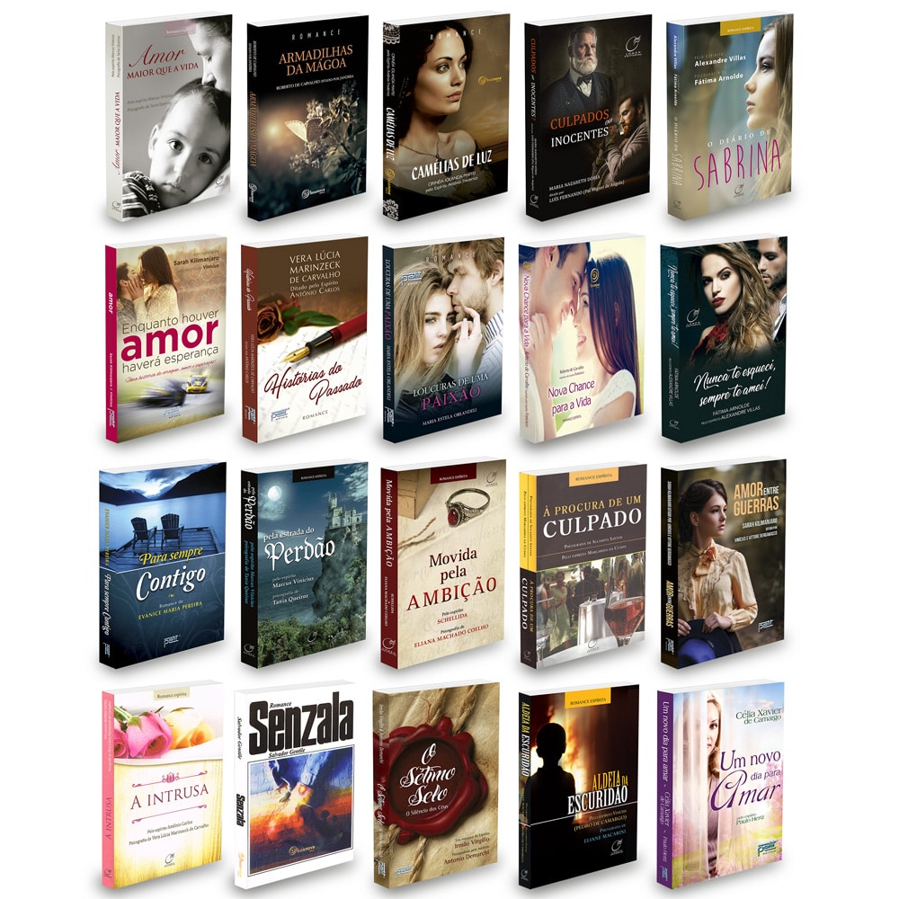 LIVROS NOVOS E FÍSICOS Este Kit Contém 1 exemplar de cada: AMOR MAIOR QUE A VIDA-320 pág-16x23 cm - (Médium:Tania Queiroz/Ditado por:Marcus Vinícius) ARMADILHAS DA MÁGOA-208 pág-16x23 cm - (Médium:Roberto de Carvalho/Ditado por: Jandira) CAMÉLIAS DE LUZ - NOVA EDIÇÃO-384 pág-16x23 cm - (Médium:Cirinéia Iolanda Maffei/Ditado por: Antonio Frederico) CULPADOS OU INOCENTES?-400 pág-15,5x22,5 cm - (Médium: Maria Nazareth Dória/Ditado por: Luís Fernando (Pai Miguel de Angola)) DIÁRIO DE SABRINA-344 pág-16x23 cm - (Médium: Fátima Arnolde/Ditado por: Alexandre Villas) ENQUANTO HOUVER AMOR HAVERÁ ESPERANÇA-304 pág-16x23 cm - (Médium: Sarah Kilimanjaro/Ditado por: Vinícius) HISTÓRIAS DO PASSADO-240 pág-15,5x22,5 cm - (Médium: Vera Lúcia Marinzeck de Carvalho/Ditado por: Antônio Carlos) LOUCURAS DE UMA PAIXÃO-208 pág-16x23 cm - (Autor: Maria Estela Orlandeli) NOVA CHANCE PARA A VIDA-256 pág-16x23 cm - (Médium: Roberto de Carvalho/Ditado por: Francisco) NUNCA TE ESQUECI, SEMPRE TE AMEI!-224 pág-16x23 cm - (Médium: Fátima Arnolde/Ditado por: Alexandre Villas) PARA SEMPRE CONTIGO-280 pág-16x23 cm - (Autor: Evanice Maria Pereira) PELA ESTRADA DO PERDÃO-400 pág-16x23 cm - (Médium: Tania Queiroz/Ditado por: Marcus Vinícius) A SOMBRA DE UMA PAIXÃO - 480 pág-14x21 cm - (Médium:Tanya Oliveira/Ditado Por:Eugene) A PROCURA DE UM CULPADO - 528 páginas - 14x21 cm - (Médium: Sulamita Santos / Ditado por: Margarida Cunha) A HISTÓRIA DE REBECA - 208 pág-16x23 cm - ( Médium:Mônica Antunes Ventre/ Ditado Por:Julius) A INTRUSA - 248 pág. 14x21 cm - ( Médium: Vera Lúcia Marinzeck de Carvalho / Ditado Por: Antônio Carlos) SENZALA-288 pág-14x21 cm - (Autor: Salvador Gentile) O SÉTIMO SELO -280 pág-16x23 cm - (Médium: Antônio Demarchi/Ditado por: Irmão Virgílio) ALDEIA DA ESCURIDÃO - 320 páginas - 14x21 cm - ( Médium:Eliane Macarini / Ditado por:Vinícius (Pedro de Camargo)) UM NOVO DIA PARA AMAR-392 pág-16x23 cm - (Médium: Célia Xavier de Camargo/Ditado por: Paulo Hertz)