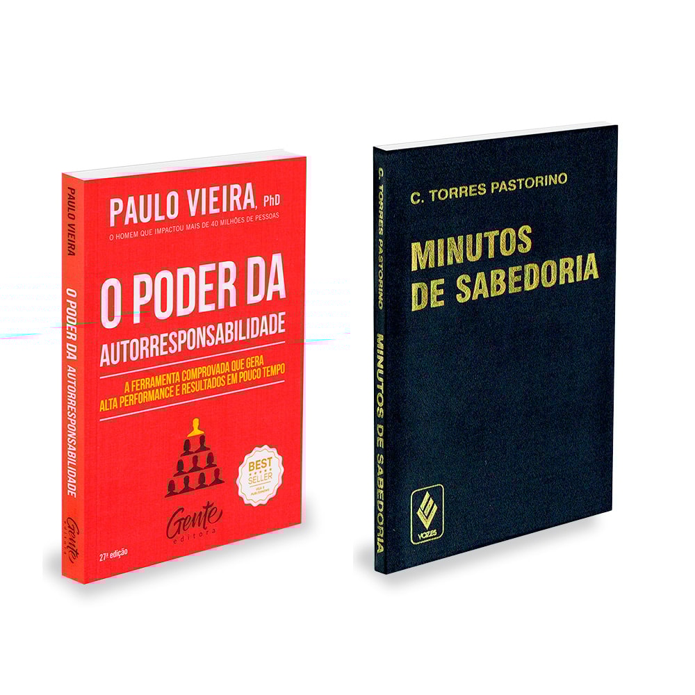 LIVROS NOVOS E FÍSICOS Este Kit Contém 1 exemplar de cada: PODER DA AUTORRESPONSABILIDADE - 190 páginas -10x14 cm - (Autor: Paulo Vieira) MINUTOS DE SABEDORIA - 292 páginas -7,5x11,5 cm - (Autor: Carlos Torres Pastorino)