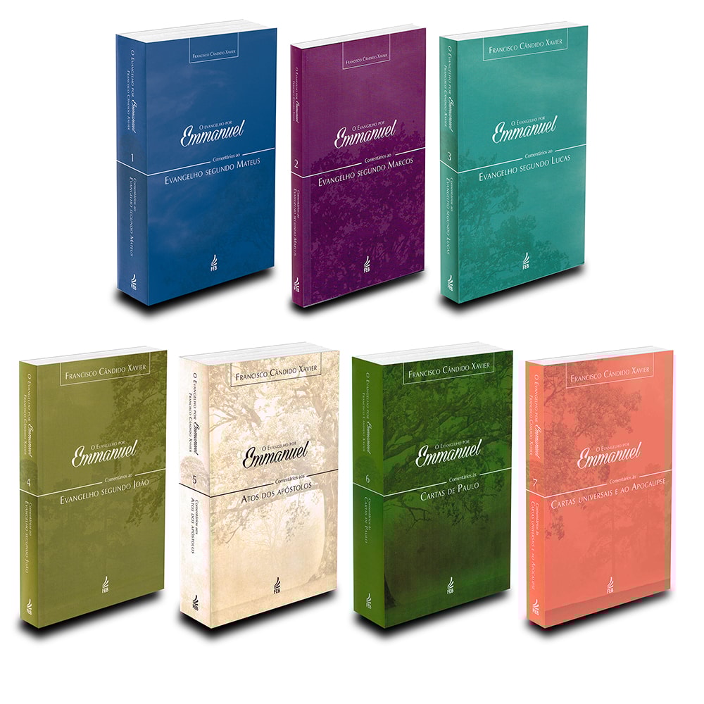 Este Kit Contém: 1 EVANGELHO POR EMMANUEL (O) - COMENTÁRIOS AO EVANGELHO SEGUNDO MATEUS - 652 páginas 1 EVANGELHO POR EMMANUEL (O) - COMENTÁRIOS AO EVANGELHO SEGUNDO MARCOS - 202 páginas 1 EVANGELHO POR EMMANUEL (O) - COMENTÁRIOS AO EVANGELHO SEGUNDO LUCAS - 370 páginas 1 EVANGELHO POR EMMANUEL (O) - COMENTÁRIOS AO EVANGELHO SEGUNDO JOÃO - 370 páginas 1 EVANGELHO POR EMMANUEL (O) - COMENTÁRIOS AOS ATOS DOS APÓSTOLOS - 584 páginas 1 EVANGELHO POR EMMANUEL (O) - COMENTÁRIOS ÀS CARTAS DE PAULO - 880 páginas 1 EVANGELHO POR EMMANUEL (O) - COMENTÁRIOS ÀS CARTAS UNIVERSAIS E AO APOCALISE - 322 páginas