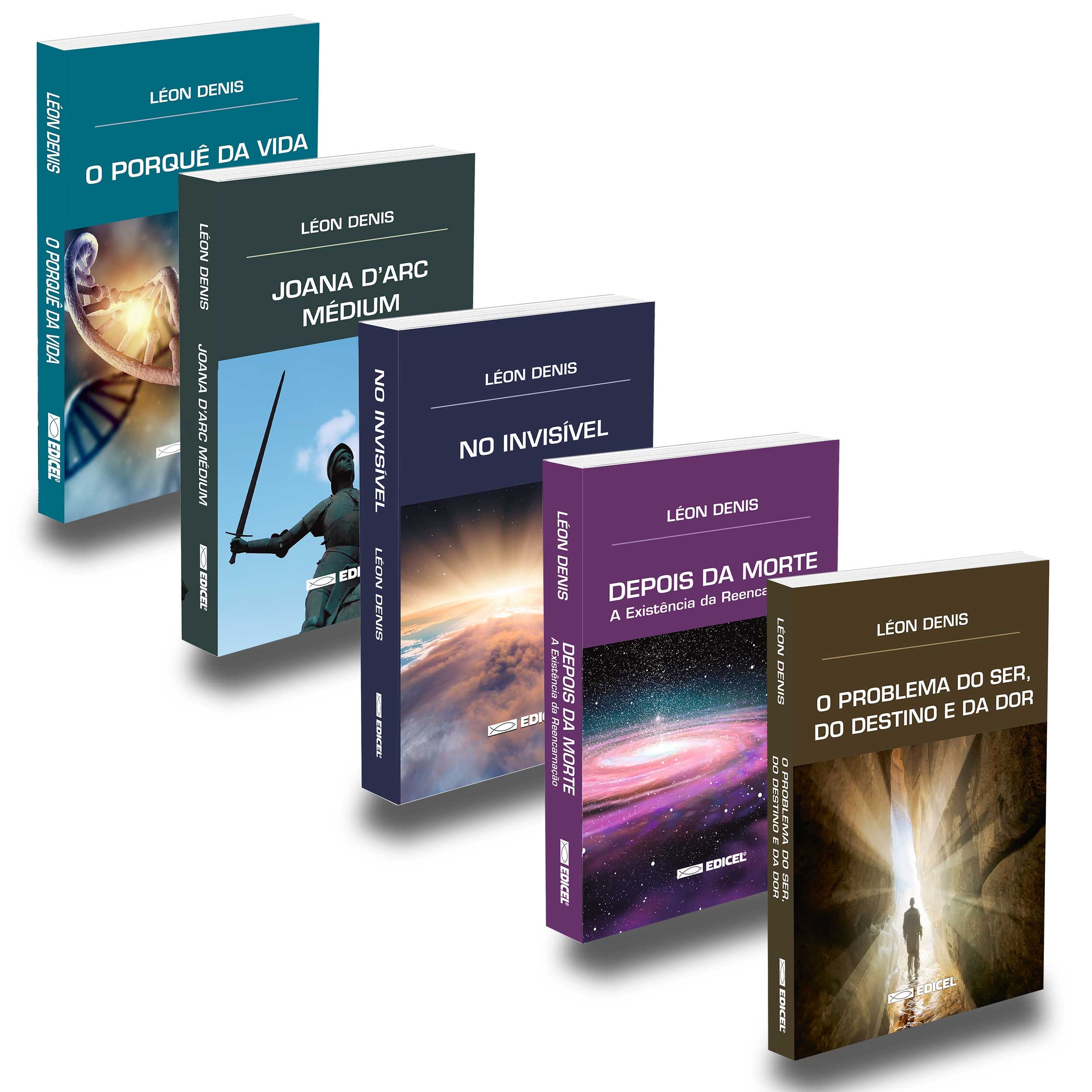 LIVROS NOVOS E FÍSICOS Este Kit Contém 1 exemplar de cada: DEPOIS DA MORTE - NOVA EDIÇÃO - 304 páginas -16x23 cm - (Autor: Léon Denis / Tradução: Torrieri Guimarães) NO INVISÍVEL - NOVA EDIÇÃO - 464 páginas -15,5x22,5 cm - (Autor: Léon Denis) JOANA D'ARC MÉDIUM - 288 páginas -15,5x22,5 cm - (Autor: Léon Denis / Tradução: Guillon Ribeiro) PORQUÊ DA VIDA (O) - 176 páginas -15,5x22,5 cm - (Autor: Léon Denis / Tradução: João Lourenço de Souza) PROBLEMA DO SER, DO DESTINO E DA DOR (O) - 416 páginas -16x23 cm - (Autor: Léon Denis)